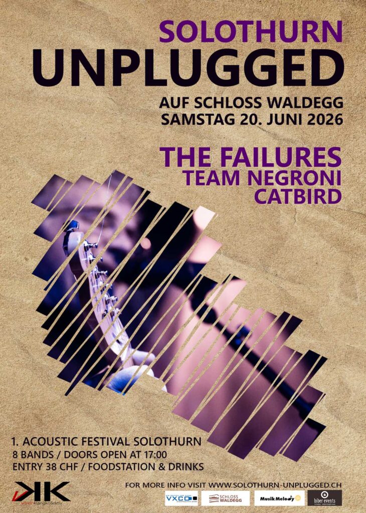 The Failures are back! 1987 gegründet, ist die Band neben Krokus wohl eine der bekanntesten aus Solothurn. Musikalisch erfindet sich das Quartett ständig neu, was nach knapp 40 Jahren Bestehen nicht selbstverständlich ist. Jetzt kommen sie zu ihrem fast 40-jährigen Bandjubiläum mit ihrem Unplugged-Set auf die Bühnen zurück.The Failures gaben seit ihrer Gründung über 350 Liveshows im In- und Ausland, darunter Auftritte in zahlreichen schweizer Clubs, Konzerte in Frankreich, Italien, Österreich, Spanien, USA, Jamaica, Polen, Estland und Dänemark sowie 3 Tourneen in Deutschland. Sie überzeugten in Clubs wie dem CBGB’s in New York oder an Festivals wie dem Roskilde in Dänemark. Oft spielten sie zusammen mit namhaften Acts wie Henry Rollins, Therapy, New Model Army, Jesus Jones und vielen mehr. Hier und jetz für euch ganz privat und zum Greifen nah – Unplugged auf Schloss Waldegg.